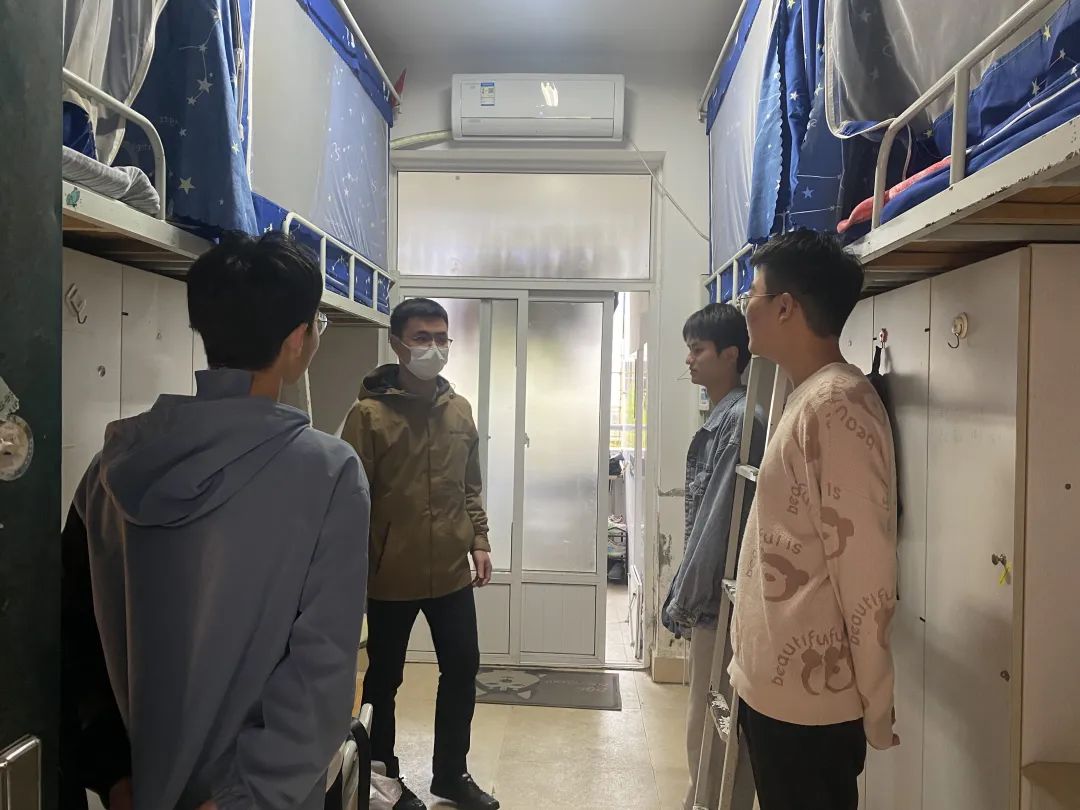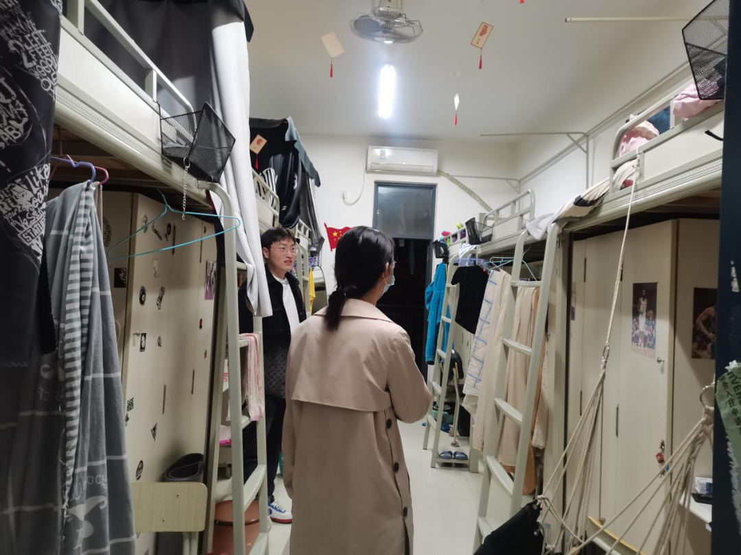 院党委副书记与两位党员辅导员,每天坚持住校沉入学生当中,与学生进行谈心谈话,深入了解学生需求,共计解决学生宿舍诉求宿舍墙体粉刷脱落,空调制热不足、浴室水温不够,水龙头漏水,阳台门损坏等相关问题14件。招募组建了由学生党员为主体的“疫情防控青年突击队”,对学生宿舍卫生情况、违规物品使用、晚归等情况进行督导,消除宿舍安全隐患;同时对疫情防控下进出食堂等公共场所佩戴口罩进行督导,对学校快递点包裹消毒拆封后取件进行督导,将防疫措施真正落到实处。