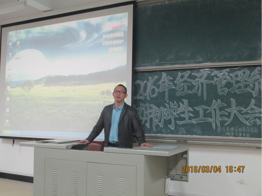2016年3月4日下午三点,经济管理系于求真楼Bb201召开了期初学生工作大会,出席本次会议的有系党总支副书记周建辉、团委书记王佳佳、专职辅导员杜艳芳等老师,以及全体学生会成员。