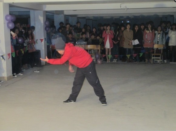 五彩的灯光闪烁,粉红的气球将现场装扮的美轮美奂。如梦如幻的音乐将我们带入了舞会优美的现场,首先为我们表演的是生物系带来的开场舞,动感活力的舞蹈,充分展现我们当代大学生的青春与活力。紧接《机械舞》将现场的气氛带入正轨。一曲终、一首起。聚光灯下,经管系带来的《现代舞》表演将晚会的气氛推向高潮,劲爆的音乐再加上动感的舞姿她们阐述了大学生无限的活力展示了大学生的风采。一曲动感十足的现代舞结束,又有一系列十分炫感的舞蹈呈现在我们面前,一系列优美的舞蹈迅速的引爆了在场的观众,虽然天空阴沉,有点寒冷但是却冷不了我们心中的热情,震耳欲聋的掌声一阵高过一阵。