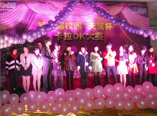 为了丰富学生们的课余生活和给同学们一个展示自己的舞台。2011年12月26日晚上19:00我系在求真楼B区喷泉舞池旁举行了第二届卡拉ok大赛。系党总支部书记赵公弼老师、学生党支部书记周建辉老师、系办公室主任龚梓兵老师、中国电信宁德分公司郑剑经理等5位嘉宾担任此次比赛的评委。各班级还选出了40位同学作为大众评委。
