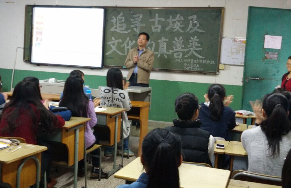 为迎接一年一度的学校科技活动月。2015年11月25日下午14点10分,经济管理系于旧校区21#207举办了一场题为“追寻古埃及文化的真善美”的专题讲座。本次讲座由经济管理系林颖教授担任主讲。出席此次讲座的有经济管理系党总支书记兼系主任游国斌、系党总支副书记周建辉等老师以及思政政治教育班的同学。
