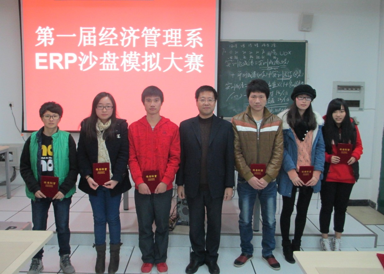 为了响应我校一年一度的科技活动月,同时也培养学生的创业和创新意识,促进学生对企业经营管理知识的理解,通过模拟企业实际经营过程,提升同学们的组织、协调、沟通、决策、团队合作、风险评估等多方面能力,以及丰富学生的课余生活,经管系于2013年12月22日在求真楼BB402举办了第一届ERP企业沙盘模拟大赛。