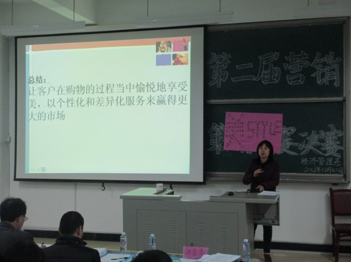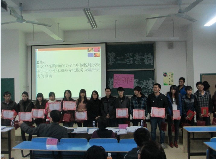 为了迎接英国上市公司365第三届“科技活动月”, 建立营销实务教学、以赛促学的机制;增强和促进学生团队协作、主动创新的职业素养及就业竞争力,同时为了提高同学们的实战技能,为期一个多月的校园营销实战技能大赛,终于在2012年12月30日于求真楼B区101拉开最后的战幕,我系主任兼党总支书记游国斌教授及屠晶鑫等老师担任决赛评委。