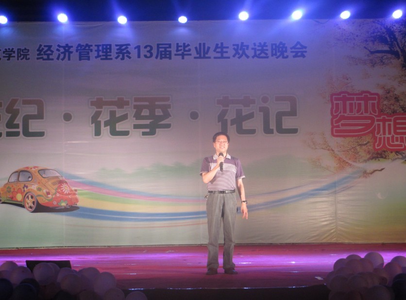 在一段精彩的开场舞《HUSH》之后,系党总支书记游国斌教授给晚会致开幕辞,游国斌教授回顾了2013届的毕业生三年来的工作学习,肯定了他们所取得的各种成绩与荣誉,鼓励大家在今后的人生道路上继续努力,勇攀高峰。在他们离别之际,为他们送上最诚挚的祝福。