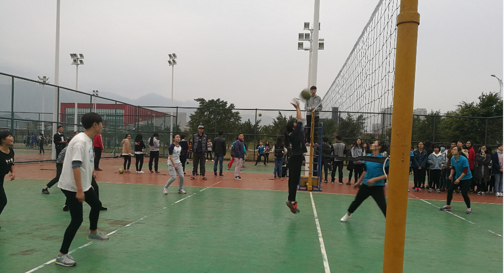比赛开始前,各系观众早早聚集在赛场周围翘首以待这场精彩的赛事。“兵马未动,粮草先行”,经管系的啦啦队队员们早已做好充分准备,为排球队员们加油呐喊。比赛伊始,双方势均力敌,难分高下,第一轮比赛结束,经管系比分稍稍落后,在商量战术和对策后,第二轮比赛紧跟其后,逐渐拉近的比分、场上观众的呐喊声令气氛更加热烈。每一次传球、发球、扣球都牵动着在场同学们的心弦。经管系队员攻势迅猛,默契配合应对进攻,一记记发球都强而有力,排球在空中上下迭起。最终经管系以15:25的比分惜败教育系,获得本次排球赛亚军。
