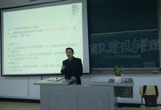 12月21日下午2点30分,经济管理系特邀江夏学院路越副教授作“团队建设与危机管理”专题讲座。参加本次讲座的有经管系主任兼党总支书记游国斌、党总支副书记周建辉等老师以及系一百多名学生。