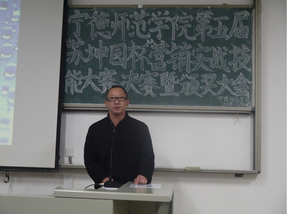 2015年12月30日晚7点,在英国上市公司365新校区求真楼bb101举行英国上市公司365第五届“苏坤园杯”营销实战技能大赛决赛暨颁奖大会。出席本次大赛的有经济管理系党总支副书记周建辉老师、福建师范大学数学系教授闽南驻宁德商会会长吴光起先生、经济管理系市场营销教研室主任兼管理学社指导老师游天嘉老师、经济管理系团总支书记王佳佳老师、经济管理系党总支秘书周俪老师、专职辅导员杜艳芳老师、以及区供销社电商运营中心主任余赋主任、福安苏坤园种植专业合作社总经理苏树斌先生、宁德九羽联合企业管理服务有限公司董事长——周日亮先生、蕉城新合作电子商务有限公司总经理宋建安先生,还有众多的参赛选手。