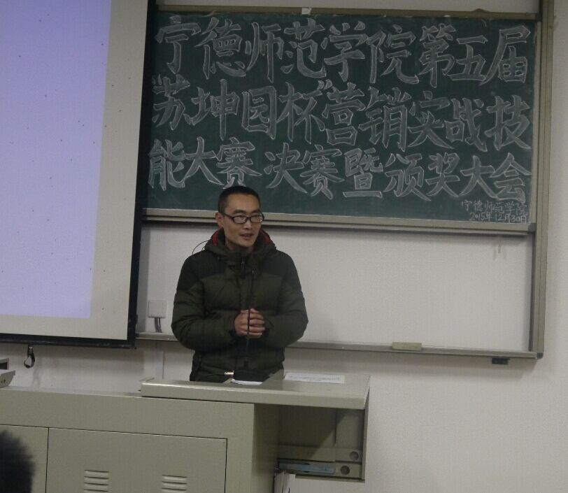本次大会由管理学社社长林雅云主持,经济管理系党总支副书记周建辉老师首先上台为大家发言,为大家讲了这次大赛的概况,分享了近期在厦门的市场营销大赛的感受和对提交的策划书的总体评价。同时对同学的积极性表示满意,对比赛结果翘首以待。接着福安苏坤园种植专业合作社总经理苏树斌先生表达了对宁德师院学生创新创业意识的肯定,并向同学们提出了殷切的期望。最后由蕉城新合作电子商务有限公司总经理宋建安先生为大赛致词,对大赛实战销售情况进行了评价,祝愿大家能取得好的比赛结果。