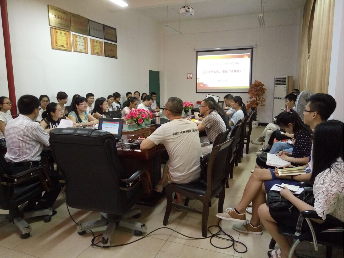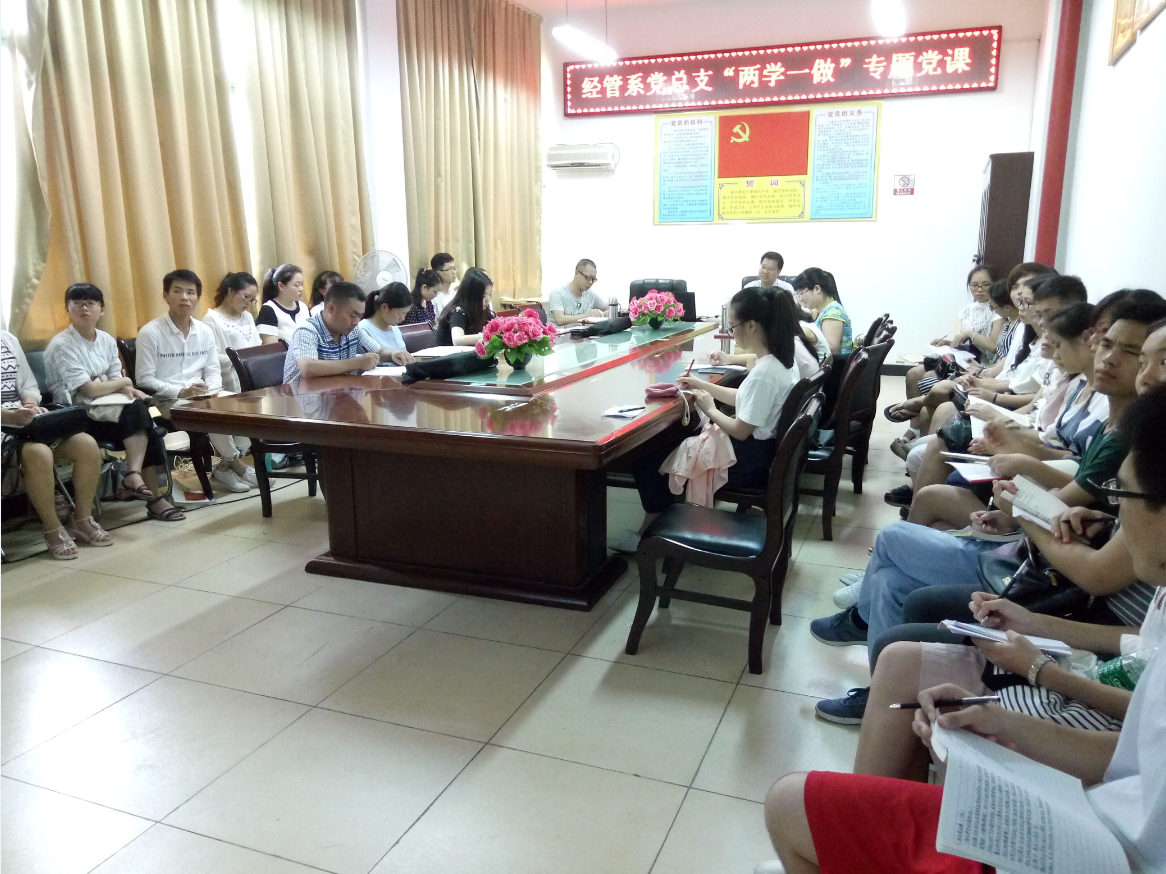 为庆祝中国共产党成立95周年,深入推进“两学一做”学习教育,6月29日下午,经济管理系党总支书记游国斌教授为全体师生党员、部分入党积极分子上了题为《坚定理想信念,增强“四个意识”》的专题党课。