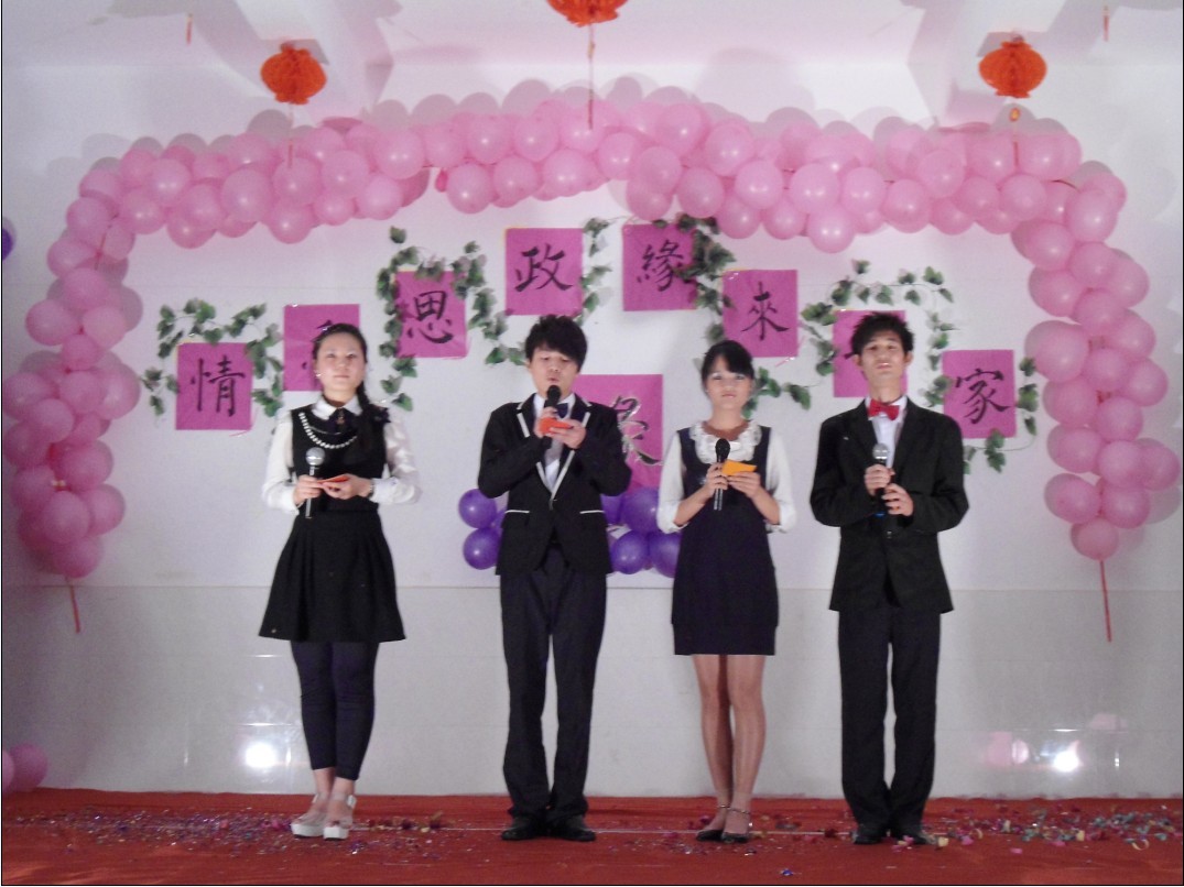 2012年10月26日晚上19点,我系思政专业联合举办的联欢晚会,于求真楼水池旁举行。宁德师院宣传部长兼经管系党总支书记赵公弼老师、经管系教师支部书记吴家林老师、经济管理系原主任林校生教授、经管系办公室主任龚梓兵老师、经管系学生支部负责老师储书凯、徐贵登、王佳佳、陈芳等老师到场参加本次联欢晚会。