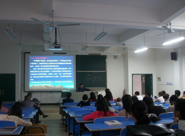 出席此次讲座的有系副主任游国斌老师、教师党支部书记吴家林老师、学生党支部书记周建辉老师、办公室主任龚梓兵老师等多位老师。学生们热情高涨,教室里座无虚席。