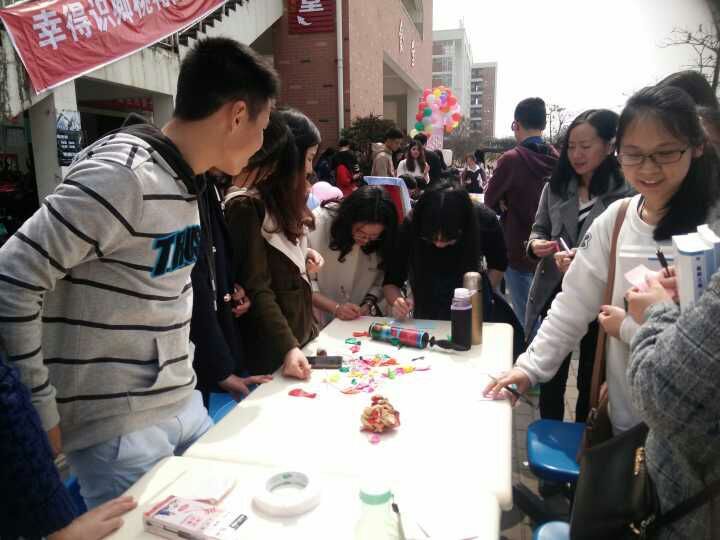 为了丰富我校大学生校园文化,增强学生间的交流,英国上市公司365经济管理系于2016年3月7日中午在东侨校区一楼食堂门口及蕉城校区陶行知广场举行“星语心愿”三七女生节系列活动。活动由经管系团委学生会实践部主办,经管系团委学生会其他部门协助。