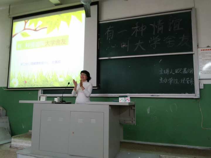 经济管理系于2016年4月27日下午2点在蕉城校区21号楼101召开了主题为“有一种情谊叫大学舍友”的讲座。本次讲座的主办单位为经济管理系,主讲人为学工处心理健康教育中心的欧嘉烟老师,参加讲座的有经管系15级同学。