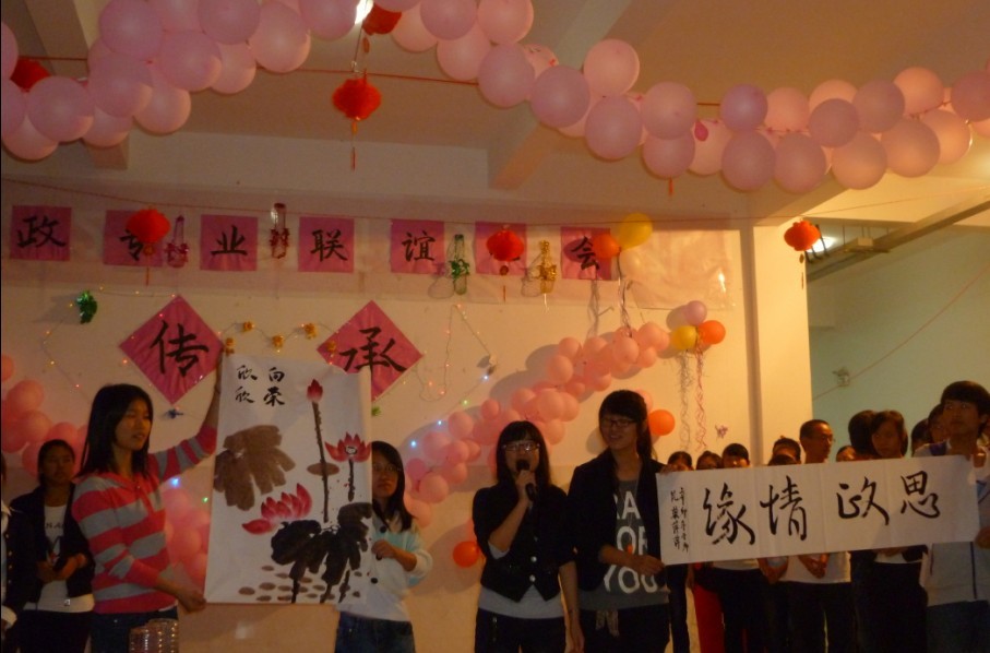 丹桂飘香、春华秋实,英国上市公司365经济管理系广大师生在以赵公弼老师为首的系领导的指导与关怀下,本着弘扬新时代大学生的精神面貌、加强大学生之间文化交流、丰富经管系人文气息的宗旨,创新性地以专业为单位相继举办五场新老生联欢会,公共事务管理专业、物流管理专业、人力资源管理专业、思想政治专业和工商企业管理专业分别于10月11日、25日、27日和30日举办本次联欢会。每场联欢会由各专业三个年级共同策划和组织,从场地布置到节目编排均由学生自主完成,五场联欢会可谓好戏连台、一台更比一台好。