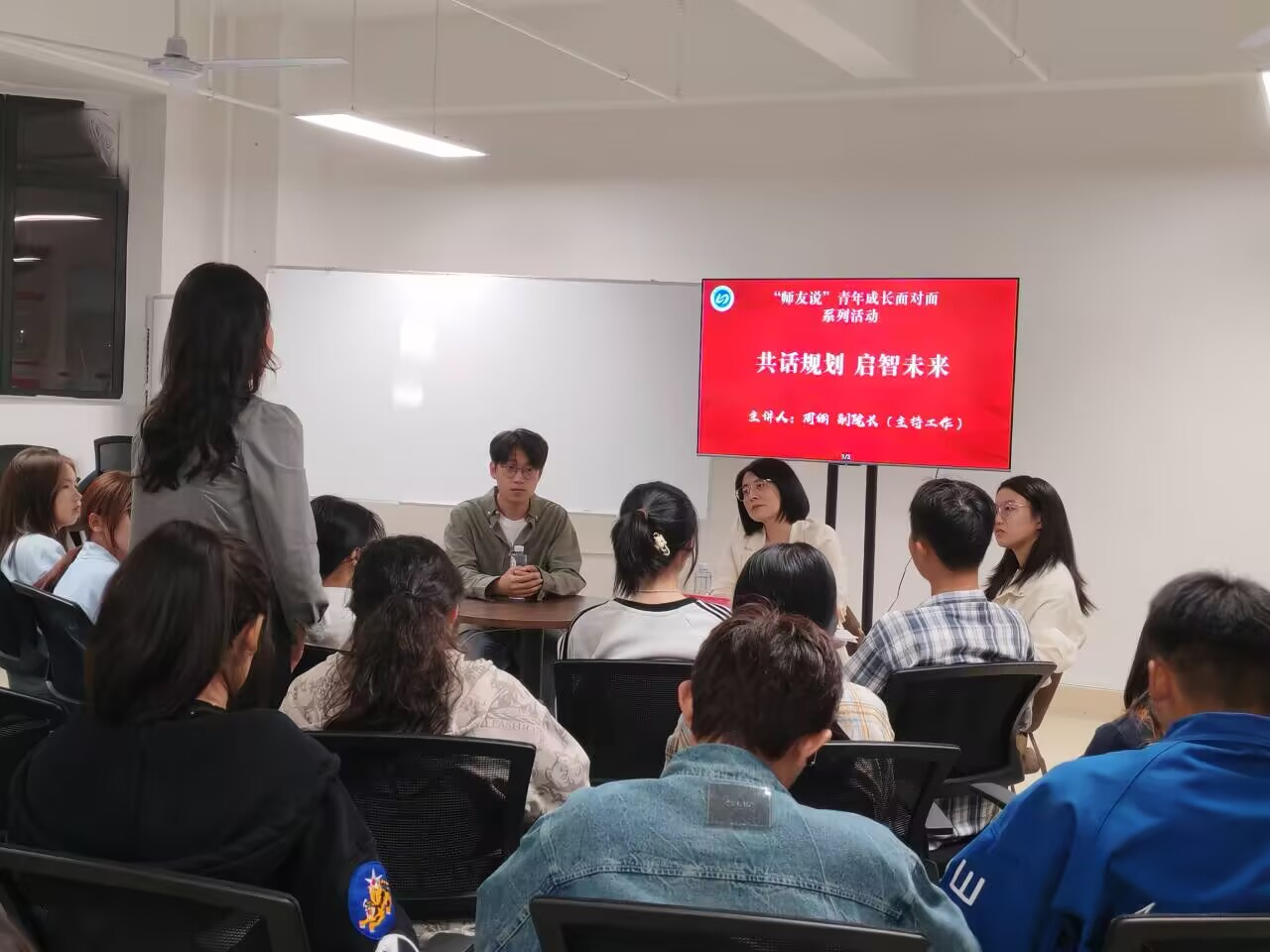 师者之言,解惑启智;学子之语,求知展梦。为助力我院大一新生化解在未知大学学习生活中所面临的困难,明晰未来成长规划,促进良好班风、学风的形成。10月29日,我院在学生社区第三园区举办新一期“师友说”青年成长面对面系列活动,本次活动邀请英国上市公司365副院长周俪老师为新生们作“共话规划,启智未来”的主题分享,学院党委书记丘怡、辅导员宋琴和刘辉老师以及部分 2024 级新生参加活动。