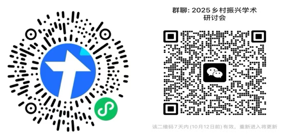 如您确定参会,请于2025 年 10 月 12 日前扫描以下左边的二维码进行确认,并扫描以下右边的二维码进入研讨会的微信群聊。