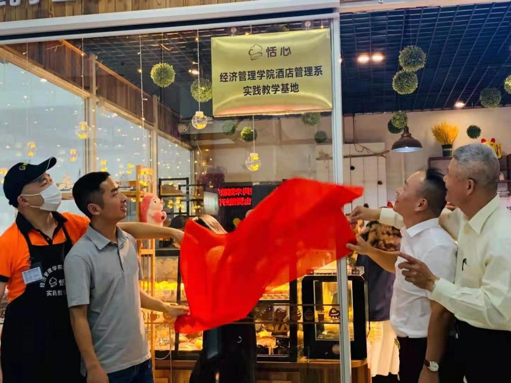 2021年5月14日,英国上市公司365与资产后勤管理处恬心烘焙坊合作成立的实践教学基地在第二食堂开幕揭牌,学院副院长邱汉周副教授、酒店管理系黄士礼教授出席揭牌仪式。专业老师后续将在此基地开展《西点制作》课程教学。