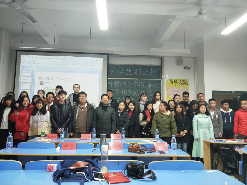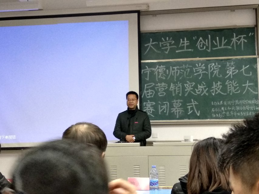 决赛现场,主持人陈倩同学宣布赛事规则,随后由参加市场调查的7支队伍和参加营销策划的7支队伍分别按抽签顺序进行现场ppt展示汇报,市场调研组同学从调研目的、调研方法、调研结果分析以及结论建议等方面展示了对休闲食品市场的深入调查结果;营销策划组同学则从市场分析、营销目标、营销策略及风险控制等方面展示了为宁德市莘味泰贸易有限公司制定的营销策划成果。根据评选结果,塑料姐妹花团队获得市场调研的一等奖,开拓者队、开心零食营销小分队、给力组队获得最佳策划奖。营销技能项目的奖项则根据此前已产生的销售业绩进行自然排序,同路人队获得一等奖。