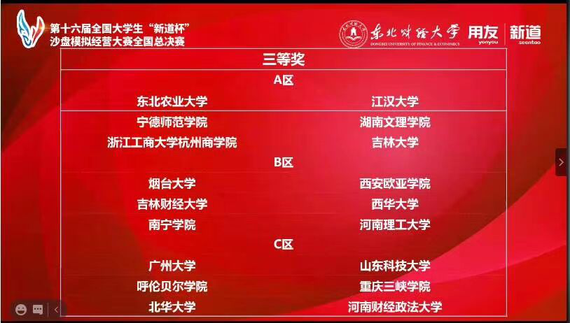 为了在高等学校中大力推进双创教育,促进高等教育发展,深化教育教学改革,培养复合型人才,11月8日,由中国商业联合会主办、东北财经大学承办、新道科技股份有限公司提供技术支持的第十六届全国大学生“新道杯”沙盘模拟经营大赛全国总决赛拉开帷幕。