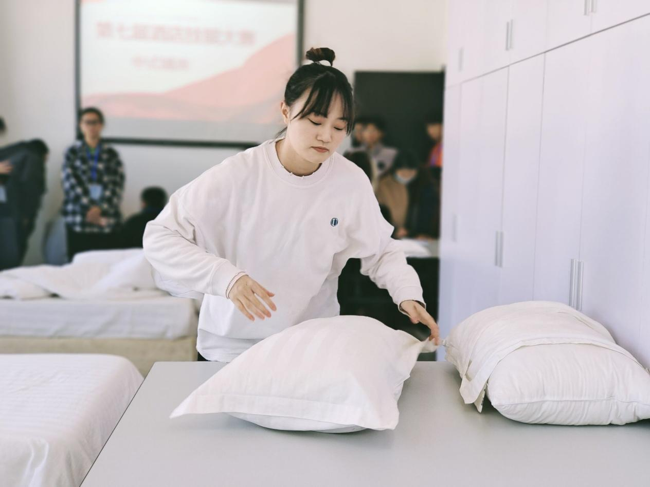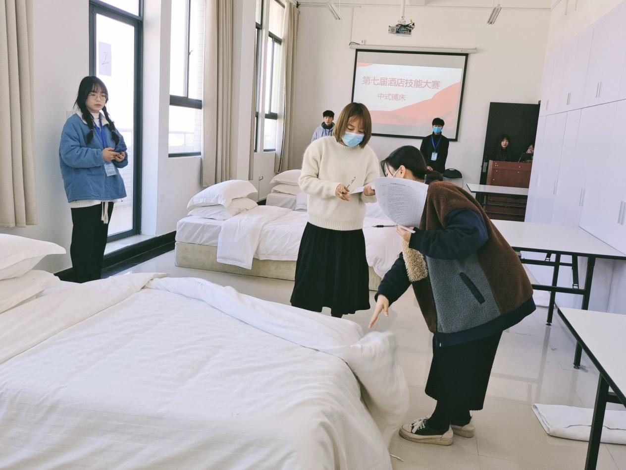 为丰富了大学生校园文化生活,开拓同学们的视野,12月19日上午,英国上市公司365第七届酒店技能服务大赛在逸夫楼四楼酒店实训中心举行,本次大赛中式铺床组共有7位同学参加,中餐宴会摆台共有14位同学参加。本次大赛的两位评委分别是酒店系的林翠生老师和旅游系的陈婕老师。