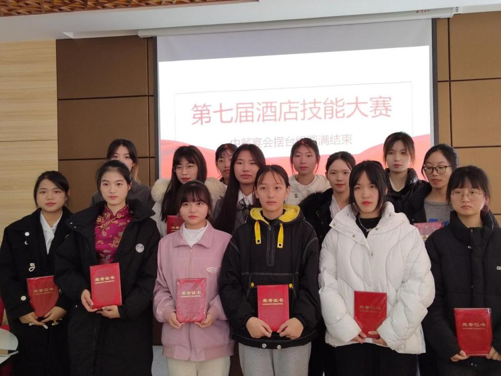 最终经过激烈比拼,最终2019级酒店管理班陆浚同学获中式铺床一等奖,2020级酒店管理班陈思婕同学获中餐宴会摆台一等奖。比赛结束,进行了各个奖项的颁奖,参赛选手与老师拍照留念。