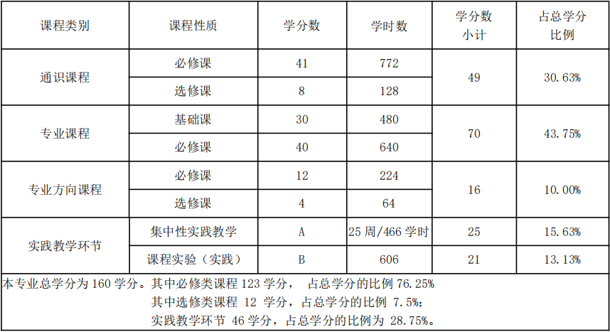 七、课程结构比例表