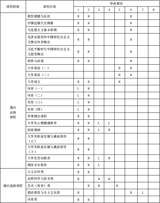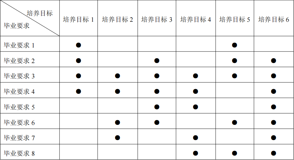 三、“毕业要求-培养目标”对应矩阵