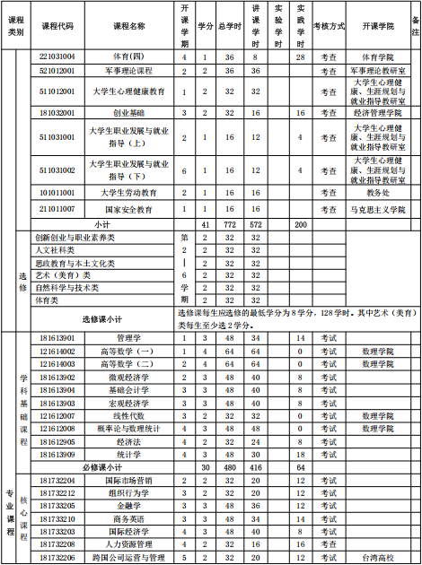 毕业要求3:基础知识。具备扎实的经济学和管理学理论基础,掌握管理学、微观经济学、宏观经济学、基础会计学、金融学、经济法等基本课程内容。