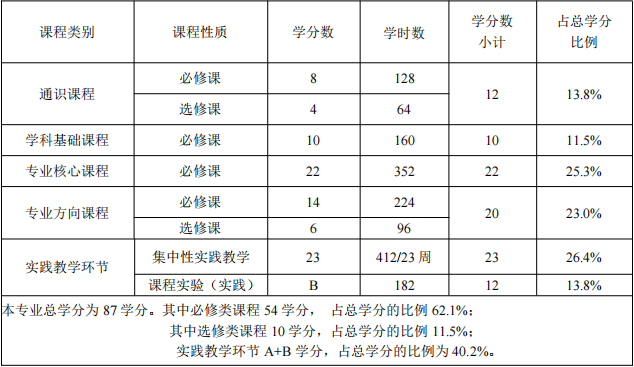 七、课程结构比例表