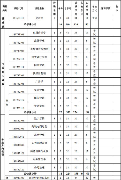2.4 掌握市场营销学、市场调查、消费行为学、营销策划、网络营销、广告理论与实务、战略管理等专业知识,具备开展营销活动的专业技能;