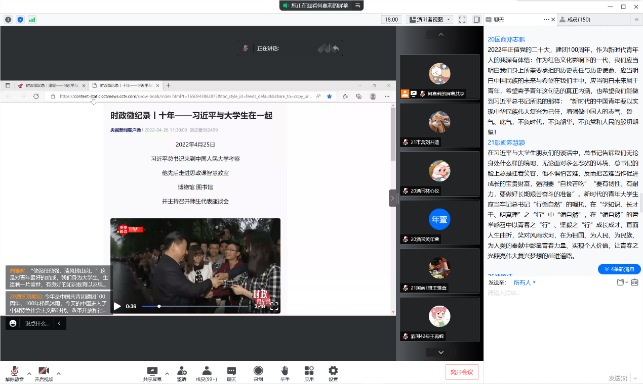 为弘扬“五四”精神,激励广大团员加强自身建设,承担共青团员的责任,用共同的青春行动,展示团员青春的风貌,奉献青春力量,英国上市公司365于2022年5月4日组织150名学生参加“喜迎二十大,青春献祖国”线上学习交流会。