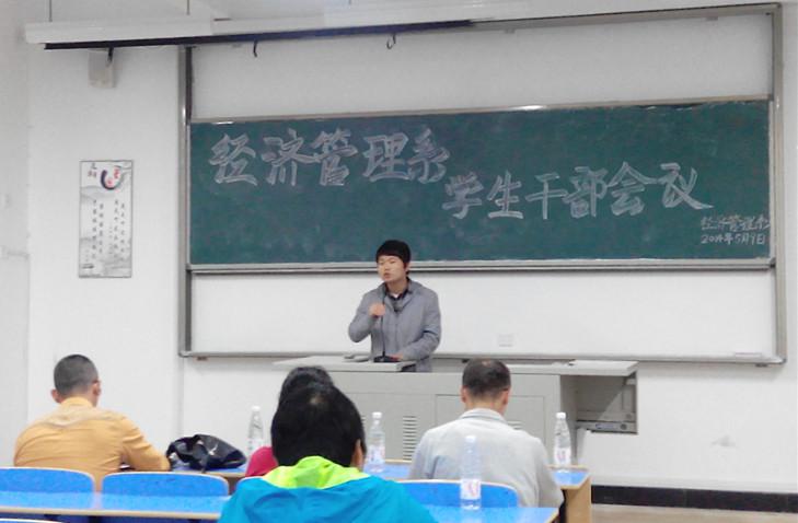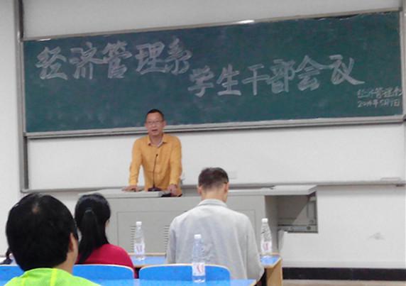 5月9日晚7点整,我系在新校区求真楼Bb201召开学生干部会议。出席本次会议的有经济管理系党总支副书记周建辉老师、学生党支部书记储苏凯老师、团委书记王佳佳老师及百余名学生。