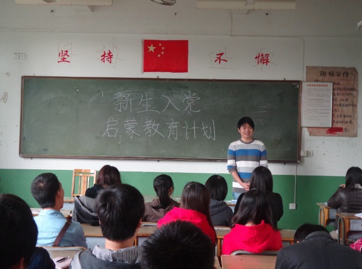 为了庆贺中共十八大的胜利召开,也为了2012级新生在入学之初树立对党各方面正确的认识。我系特于2012年11月17日开展入党启蒙教育活动。大会由我系几位党员代表与几位学生会主席主讲。