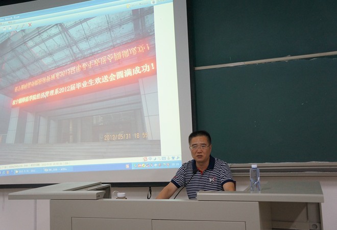 大会之初,赵公弼书记发表了重要讲话。首先对2012届欢送会的圆满举办表示了充分的肯定,这是我系近几年来最好的一场欢送会,在宁德市最高对外展示窗口——会展中心举办,整个晚会组织有序,节目的娱乐性高、内容丰富、格调高,这都离不开各班级的高度重视和积极性、主动性。晚会中互赠礼物这一环节,透露出每一个经管学生深重而浓厚的情谊。体现了上下届、师生间的情缘、情义、情趣。之后,赵书记在肯定了学生会的工作之后指出了学生会工作中存在的一些缺点,并要求学生干部在以后的工作中予以改正。最后,随后着温书假的来临,希望学生干部可以认真备考,取得优异的成绩,以起带头模范作用。