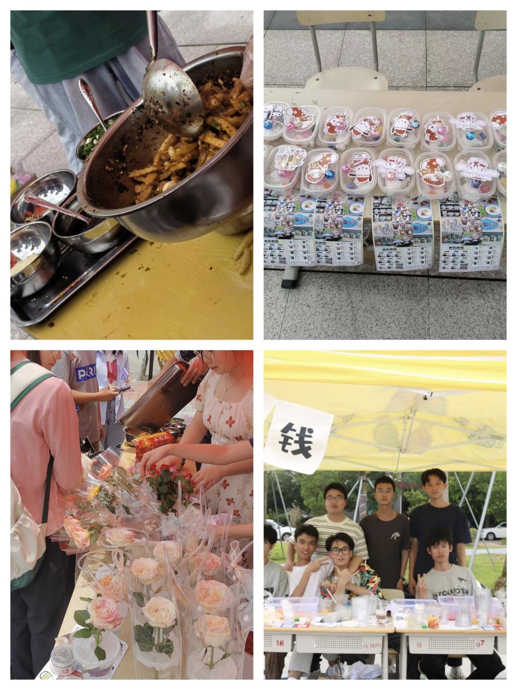 本次活动,共有33个摊位,在3号食堂对面小广场形成了创意市集。各个小组的“摊主”,经过了一个多月的酝酿和准备,充分发挥自己的创意和技能,在市集上售卖自己的产品,包括手工制品、文创、烹饪食物、主题盲盒等等,吸引了上千名师生参加。27号摊位的何欣遥说:看到了自己摊位的鸭掌和鸡爪在7分钟内售罄,卖出了一个好价钱,内心无比激动,感到十分开心;11号“贵州小铺”,才出摊不到1小时,就已将前一天工作至凌晨的储货卖光,已销售1400多元。她们说,出乎他们的意料,裹卷的制作比想像的要费时的多。