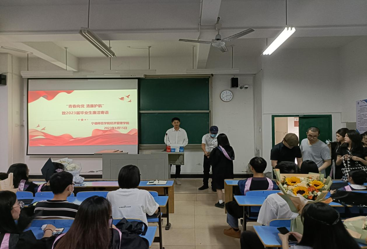 活动现场,首先,辅导员组织学生观看了《扣好廉洁从政的“第一粒扣子”--年轻干部违纪违法案件警示录》视频,通过学习违纪典型案例,引导毕业生以案为鉴,筑牢拒腐防变思想防线;坚定青年志气,提倡廉洁清风。其次,院领导向全体毕业生发放廉洁寄语贺卡,希望毕业生要牢记习近平总书记所强调的:“要涵养廉洁自律的道德修为,心有所畏、言有所戒、行有所止,不断锤炼意志力、坚忍力、自制力,做一个一心为公、一身正气、一尘不染的人。”最后,郑立文书记带领毕业生进行“廉洁从业”宣誓,引导毕业生要自觉弘扬“源清流长”的廉洁文化,扣好人生的第一粒“扣子”,走好迈入职场的第一步。