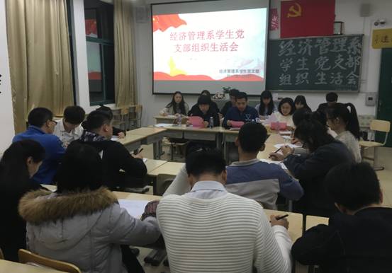 2017年1月4日晚18点,经济管理系学生支部在东侨校区求真楼b204召开经管系学生支部组织生活会。参与这次会议的有经管系学生党支部书记邱文君、系团委书记王佳佳、辅导员杜艳芳及学生党员。大会主要围绕自我评价与批评、了解全体党员与预备党员近期思想动态等展开讨论。