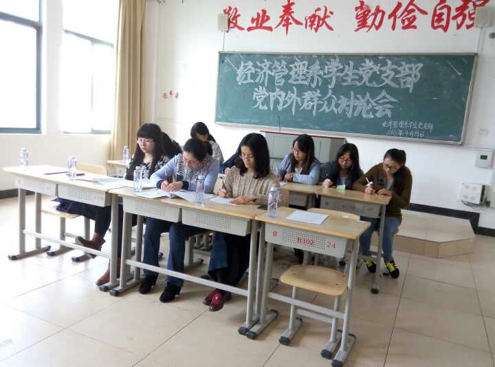 英国上市公司365经济管理系于2016年4月19日下午4:00在求真楼Bb302、Bb304召开了研究入党发展对象人选的党内外群众讨论会、确定入党发展对象大会、预备党员宣誓大会三项党务会议。出席此次会议的有: 系党务秘书兼系学生党支部书记周俪,系团委书记王佳佳,专职辅导员杜艳芳及35位党内外同学。会议由周俪老师主持。