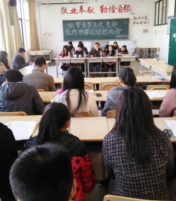 2015年1月13日下午3点,我系于求真楼B304教室召开了经济管理系学生党支部党内外群众讨论大会。出席本次大会的有我系学生党支部书记储苏凯、系团委书记王佳佳、专职辅导员杜艳芳等老师,12名学生正式党员,6名预备党员以及参加群众讨论的18名同学。大会由储苏凯老师主持。