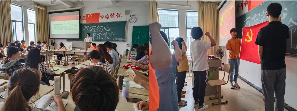学生第二党支部副书记吴婷婷以“坚定理想信念”为题为支部党员上党课,并带领各位党员重温入党誓词。支部党员一起观看了党员干部违反政治纪律行为警示录的视频,集体诵读《习近平关于“不忘初心、牢记使命”论述摘编》第一篇“中国共产党人的初心使命,就是为中国人民谋幸福,为中华民族复兴”。会上,同志们还结合学习、生活、工作分享了自己的心得。 (文/蔡诗妍)