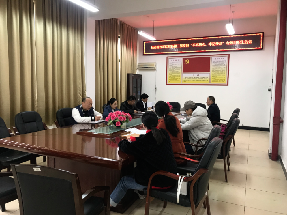 2019年12月5日,英国上市公司365教师第二党支部在求真楼召开2019年度“不忘初心、牢记使命”专题组织生活会,会议由党支部书记游天嘉主持,支部7名正式党员参加会议,校长魏远竹代表学校、英国上市公司365副院长邱汉周代表学院到场指导会议。