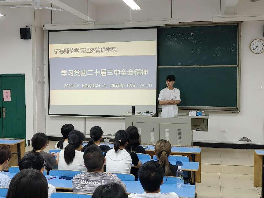 9月9日上午,全体新生集中学习党的二十届三中全会精神,深刻领会和把握进一步全面深化改革的主题、重大原则、重大举措、根本保证。市场营销专业的周同学表示,要结合自己的专业特点学习贯彻党的二十届三中全会精神,将创新思维融入于学习中,为全面推进强国建设、民族复兴贡献青春力量。
