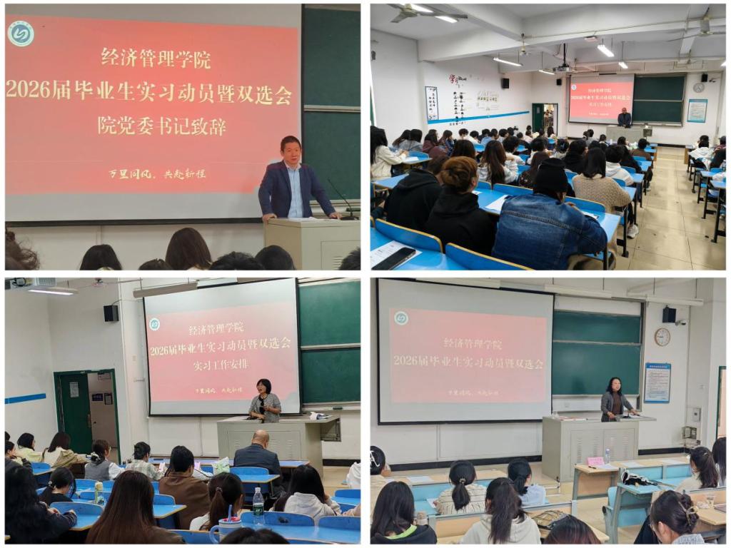 8:20-8:50,实习动员会在求真楼 BA201、BA301 两个分会场同步开展。会上学院党委书记王楠楠结合当前就业市场对经管类人才的需求特点,强调 “实习不仅是理论落地的过程,更是提前适应职场规则、积累行业资源的关键阶段”,并叮嘱学生要严守实习单位规章制度与实习安全要求,主动向指导老师反馈实习动态。各专业系主任详细解读实习教学计划,结合往届学生在跨境电商运营、品牌推广等岗位的实习案例,明确 “注重实操能力、强化沟通技巧” 的实习重点。